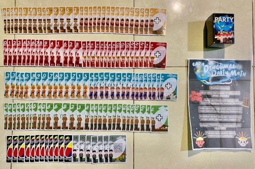 Numeracy is a fundamental competence that supports students’ ability to apply mathematical concepts in everyday situations. However, many elementary school students still face difficulties in understanding whole number concepts, which are essential for developing higher-order numeracy. This study aims to develop and validate a modified Uno card game called Party Math as a learning media to enhance students’ numeracy skills in the topic of whole numbers. The research employed a Research and Development (R&D) approach adapted from the ADDIE model, consisting of the stages of Analysis, Design, Development, Implementation, and Evaluation. Data were collected through expert validation questionnaires, student response questionnaires, and pre-test and post-test results. The data were analyzed using descriptive and quantitative techniques. The results show that the modified Uno card game meets the criteria of validity, practicality, and effectiveness. Expert evaluations from subject matter specialists, media experts, and teachers indicated that the media is highly suitable for classroom use. Student responses also revealed that the game is engaging, easy to play, and helps them understand whole number operations. Therefore, the Party Math card game can be recommended as an effective and enjoyable tool to strengthen numeracy learning in elementary schools.